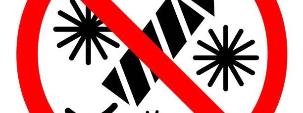 L’usage de pétards et artifices est interdit du 17 au 20 avril (Fête des Conscrits) Fireworks and firecrackers are prohibited. Pyrotechnics prohibition sign. Ban on fireworks. Design in red and black. Flat image isolated on white background. Vector.